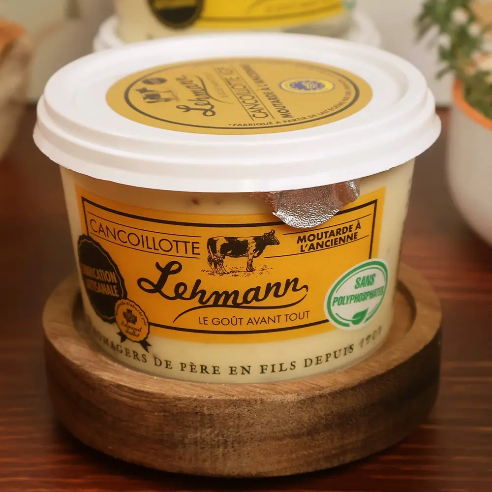 La Cancoillotte Artisanale Moutarde est une variation originale et audacieuse de la cancoillotte traditionnelle, ce fromage fondu emblématique du Jura. Ce produit, à la fois crémeux et relevé, marie la douceur lactée de la cancoillotte à la finesse piquante de la moutarde, offrant ainsi une expérience gustative unique qui ravira les amateurs de saveurs gourmandes et authentiques.