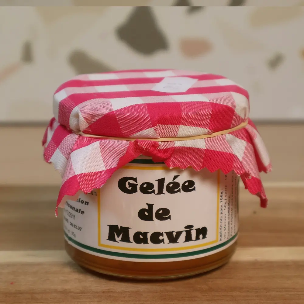 La gelée de Macvin est confectionnée avec du véritable Macvin du Jura issu de producteurs locaux. Le vin est soigneusement choisi pour la qualité de ses arômes, puis travaillé à feu doux afin de préserver toute sa finesse gustative.