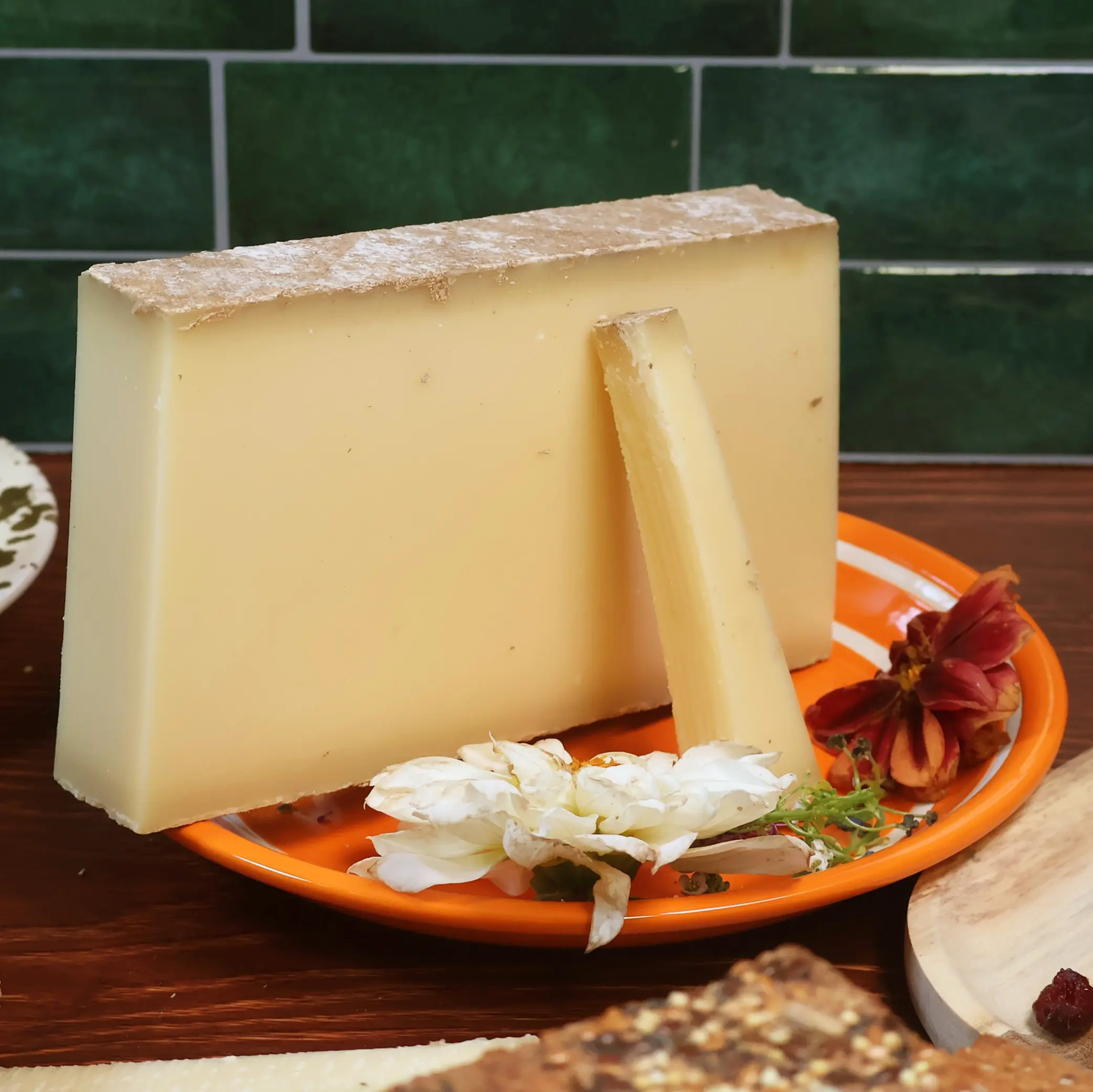 Le fromager chauffe lentement le lait, puis le fait cailler avant de le trancher finement et de le mouler dans de grands cercles de bois ou d’inox. Après un pressage et une cuisson longue et soigneuse, les meules sont salées à sec ou en saumure, puis transférées en cave pour y vieillir lentement. Durant un an, elles sont retournées et frottées régulièrement jusqu’à atteindre leur pleine maturité, sans jamais recourir à des arômes artificiels ni à des traitements thermiques.