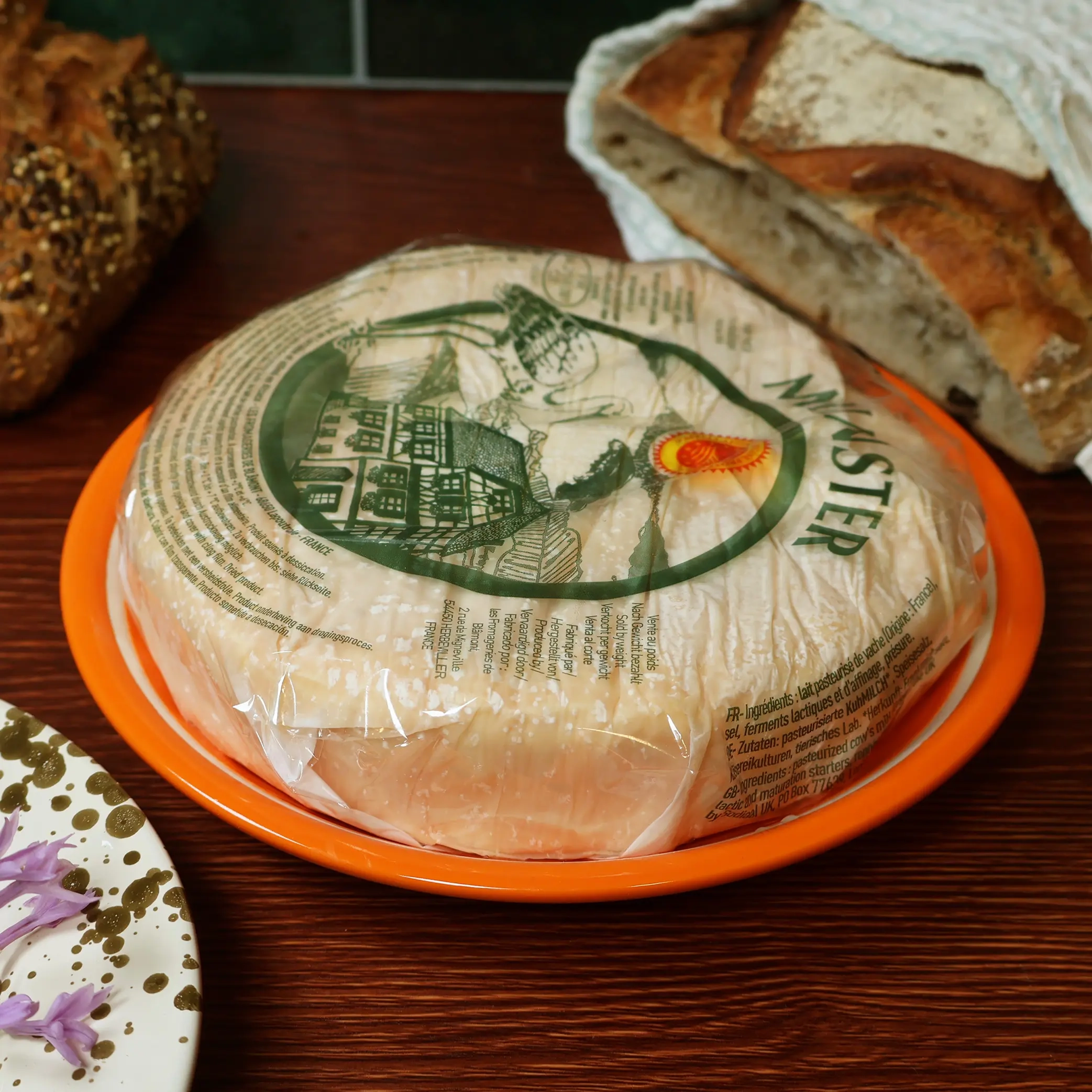 Le Munster AOP est l’un des fromages les plus emblématiques de l’Est de la France. Originaire des vallées verdoyantes des Vosges, il est reconnu depuis des siècles pour sa texture crémeuse et son goût puissant. Protégé par une Appellation d’Origine Protégée, il est fabriqué selon un cahier des charges strict qui préserve l’authenticité de ses saveurs et le savoir-faire traditionnel.