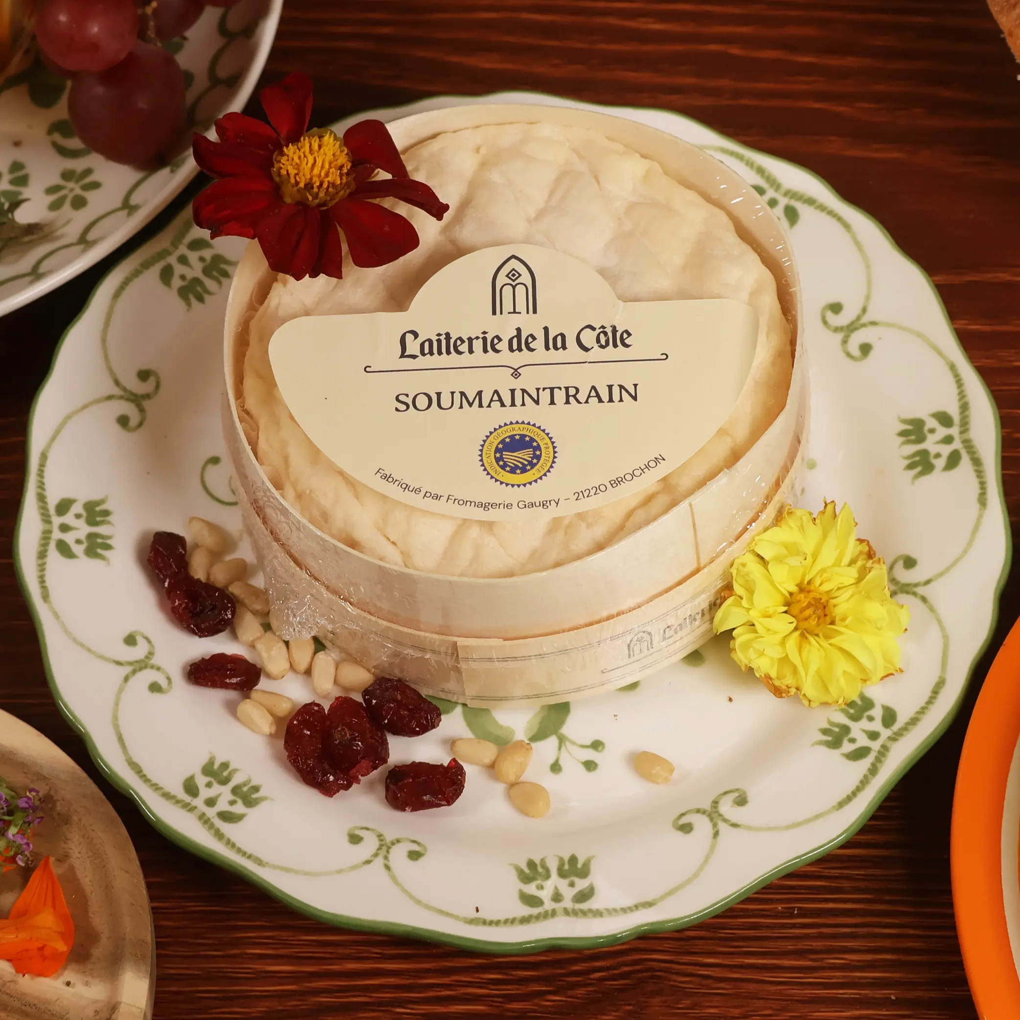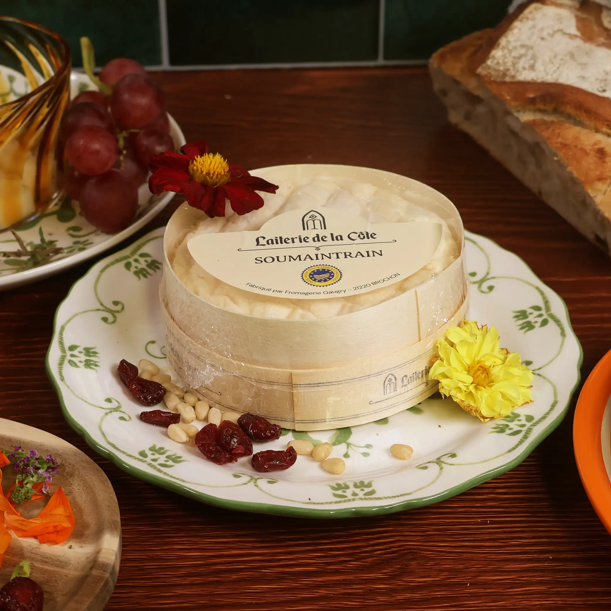 Le Soumaintrain est un fromage traditionnel qui vient de la région de Bourgogne, reconnu pour sa texture crémeuse et ses arômes puissants. Fabriqué à partir de lait cru de vache, ce fromage à pâte molle et à croûte lavée incarne l'authenticité et la richesse du terroir bourguignon.